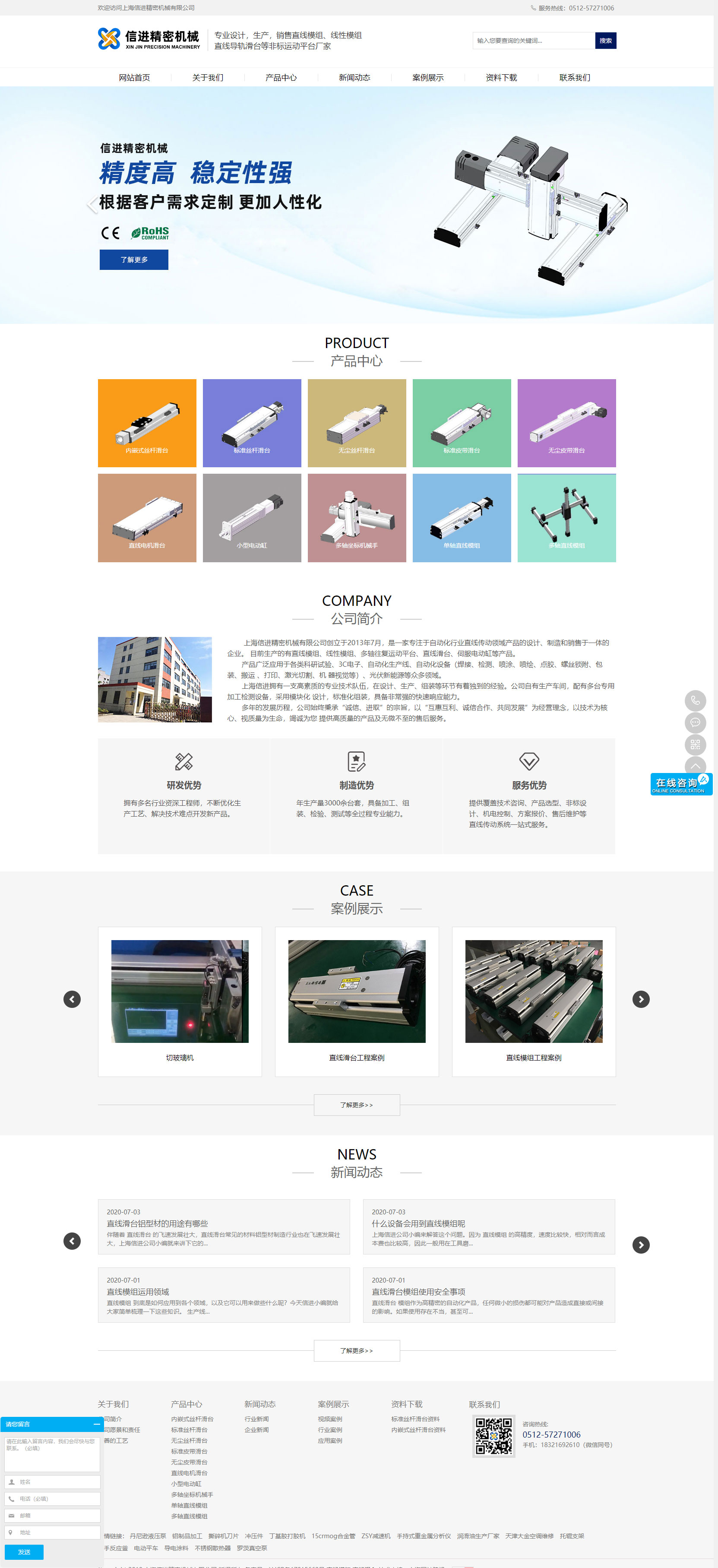 上海信進精密機械有限公司是一家專業研發,生產,銷售線性模組/運動滑臺等非標運動平臺的公司。我們具有非常優秀的技術團隊,多年的自動化設備行業經驗積累使公司具備了客戶需求的快速響應能力,目前在點膠、噴涂、焊接、包裝、搬運、平面噴繪,平面打印、光伏、排版、刻字等領域為客戶實施了高速、高精度的自動化實施方案,大幅度提高了生產效率和自動化生產水平。